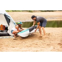 The VORTEX stand up paddle board paddle is light and offers durability and performance. This SUP paddle was designed for both novice and advanced paddlers. The 2-piece aluminum shaft with its pin locking mechanism allows for rapid height adjustments. The T-grip handle offers maximum control for greater efficiency and the blade shape is designed to prevent fatigue on longer trips. The polypropylene reinforced fiberglass blade creates a stiffer blade thus maximizing each stroke. The warm sunshine and gentle waves await!